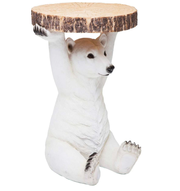 The Penny the Polar bear side table is a graceful and stunning addition to any interior setting. Her realistic design and almost lifelike expression ensure she will be noticed and admired by all who see it. A must-have companion, Penny can be used as a lamp table in the living room or conservatory, or use her in your bedroom as a bedside table.